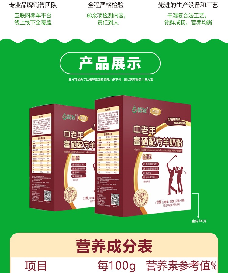 羴羊羊植物甾醇中老年配方羊奶粉400g/盒
